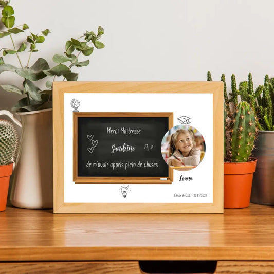 Affiche fin d'année scolaire personnalisée - Merci maîtresse ou maître avec photo