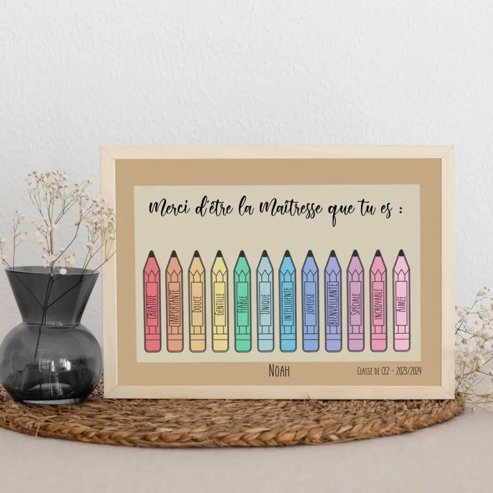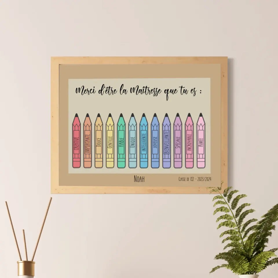 Affiche fin d'année scolaire personnalisée - Maîtresse ou maître avec qualités