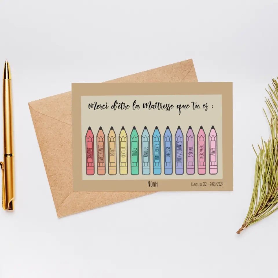 Exprimez vos remerciements avec notre affiche personnalisée mettant en avant les qualités de l'enseignant(e) de votre enfant. Idéale pour maîtresses et maître, elle ajoute une touche personnelle et valorisante à vos remerciements de fin d'année.