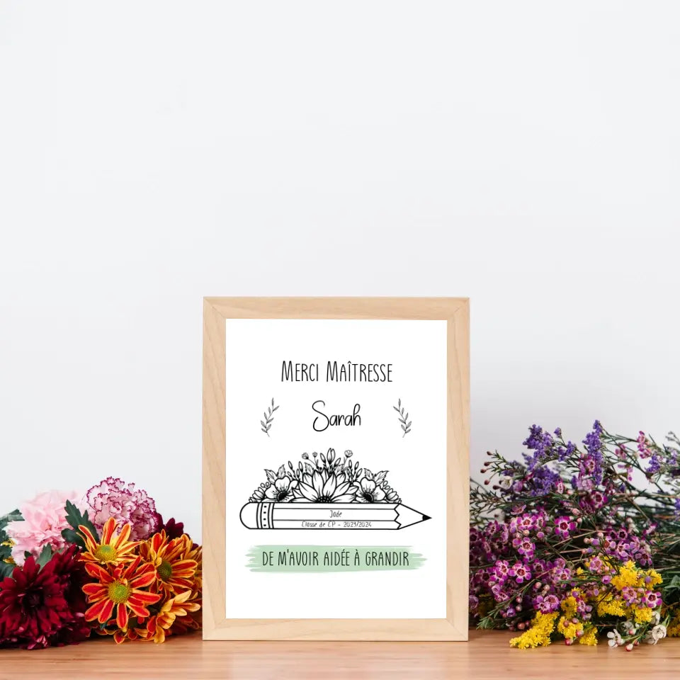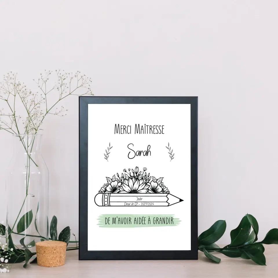 Affiche fin d'année scolaire personnalisée - Merci maîtresse, maître, atsem, nounou, crèche...